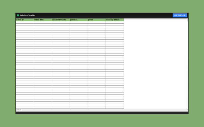 In the table above, we’ve set up an order form template with a pre-formatted table and the necessary column headers.