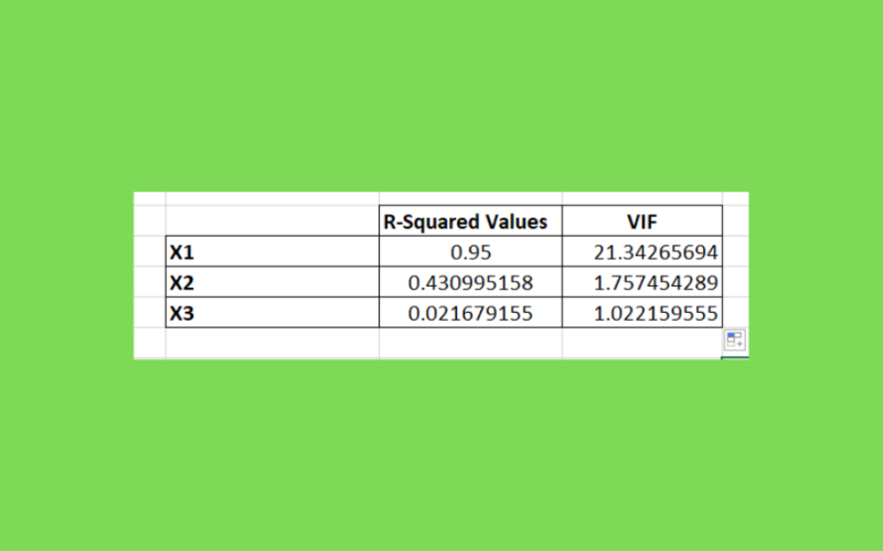 These are all the steps needed to calculate the variance inflation factor in Excel.