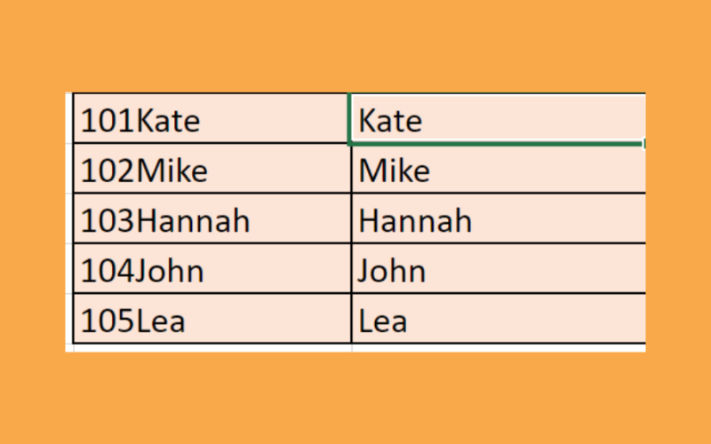 Let’s say we have a data set containing a list of employee IDs and names. And we want to extract only the names of the employee from the list. So our initial data set would look like this: