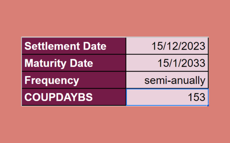 You can apply this guide whenever you need to calculate the number of days from the beginning of the coupon period to the settlement date. You can now use the COUPDAYBS