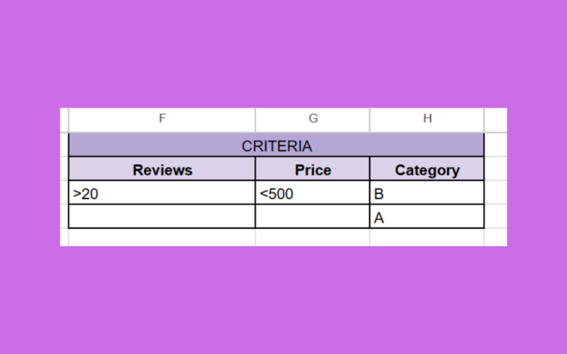 function in Google Sheets. Additionally, we will cover how to format your complex criteria into an array that can be referenced in the DCOUNTA